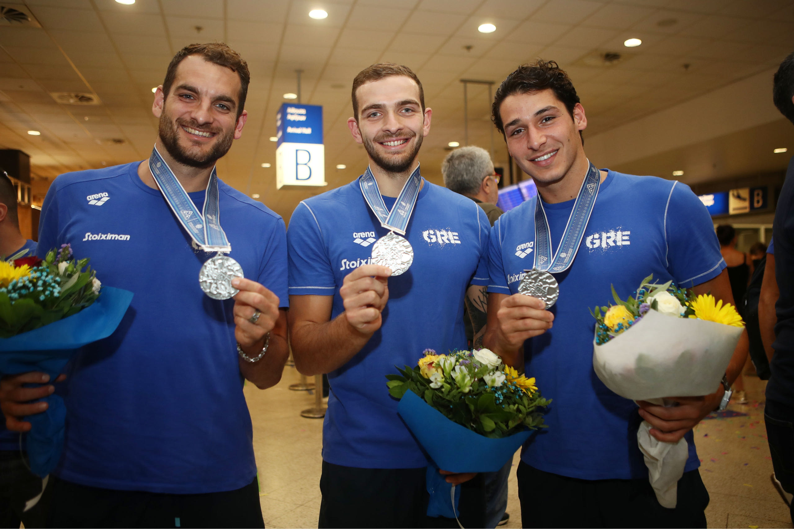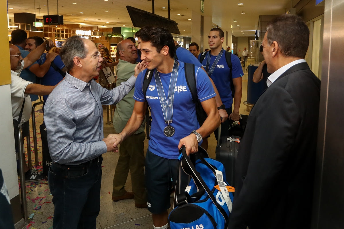 Θριαμβευτές κι ας τους γλίστρησε το χρυσό μετάλλιο μέσα από τα χέρια, επέστρεψαν στην Ελλάδα οι αθλητές και οι προπονητές της Εθνικής Πόλο Ανδρών, μετά από την προσπάθειά τους στο Παγκόσμιο Πρωτάθλημα Υγρού Στίβου στη Φουκουόκα.