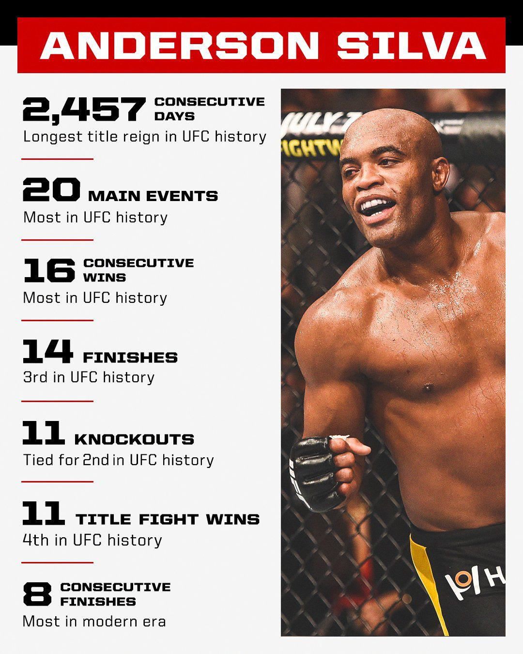 Ο Silva είναι 46 ετών και θα δοκιμάσει την τύχη του στην πυγμαχία, στις 19 Ιουνίου κόντρα στον Julio Cesar Chavez Jr. στο Μεξικό. Δείτε μερικά εκπληκτικά ρεκόρ που έχει πετύχει στο σπορ.