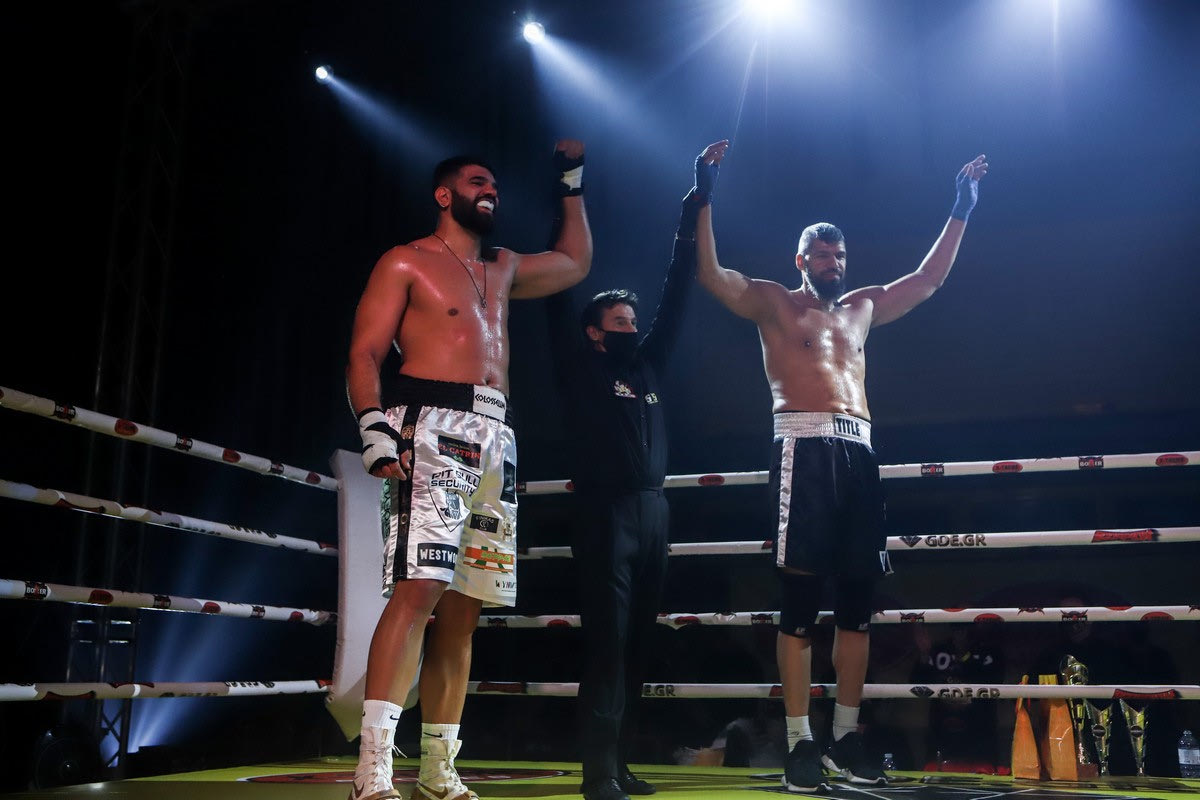 Αντίπαλός του ένας επαγγελματίας πυγμάχος και πρώην πρωταθλητής Ελλάδας, Σωτήρη Αναστασόπουλο. Ο αγώνας ολοκληρώθηκε δίχως νικητή μετά από απόφαση των κριτών με τους δύο μονομάχους να μοιράζονται το τρόπαιο.