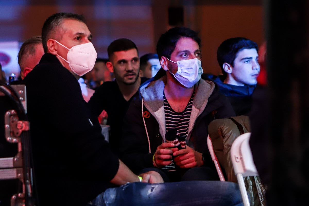 Παράλληλα, είχε και τη δική του εξέδρα. Τρεις πρώην συμπαίκτες του στον Παναθηναϊκό και την Εθνική ομάδα παρευρέθηκαν στο κλειστό του Μετς για να τον στηρίξουν. Ο λόγος για τους Δημήτρη Διαμαντίδη, Φραγκίσκο Αλβέρτη και Αντώνη Φώτση.