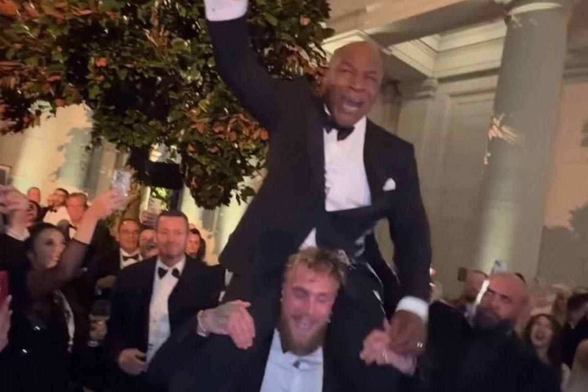 Μέσα σε ένα κλίμα γιορτής, οι δυο τους τράβηξαν τα βλέμματα όταν ο Τζέικ Πολ σήκωσε στους ώμους του τον παλαίμαχο μποξέρ, με τους δύο να γελούν και να απολαμβάνουν τη στιγμή φορώντας επίσημα σμόκιν.