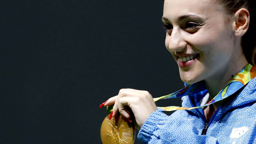 Η χρυσή ολυμπιονίκης του Ρίο έχει κάθε λόγο να χαμογελά από τη στιγμή που έφτασε στην κορυφή του κόσμου. Μόλις μάλιστα βγήκε από το γήπεδο όπου διεξαγόταν ο τελικός στα 25μ. πιστόλι, κι ενώ είχε στο στήθος της τόσο το χρυσό όσο και το χάλκινο μετάλλιο που κατέκτησε πριν από μερικές ημέρες, παραδέχθηκε -χαμογελώντας- πως ” είναι βαριά“.