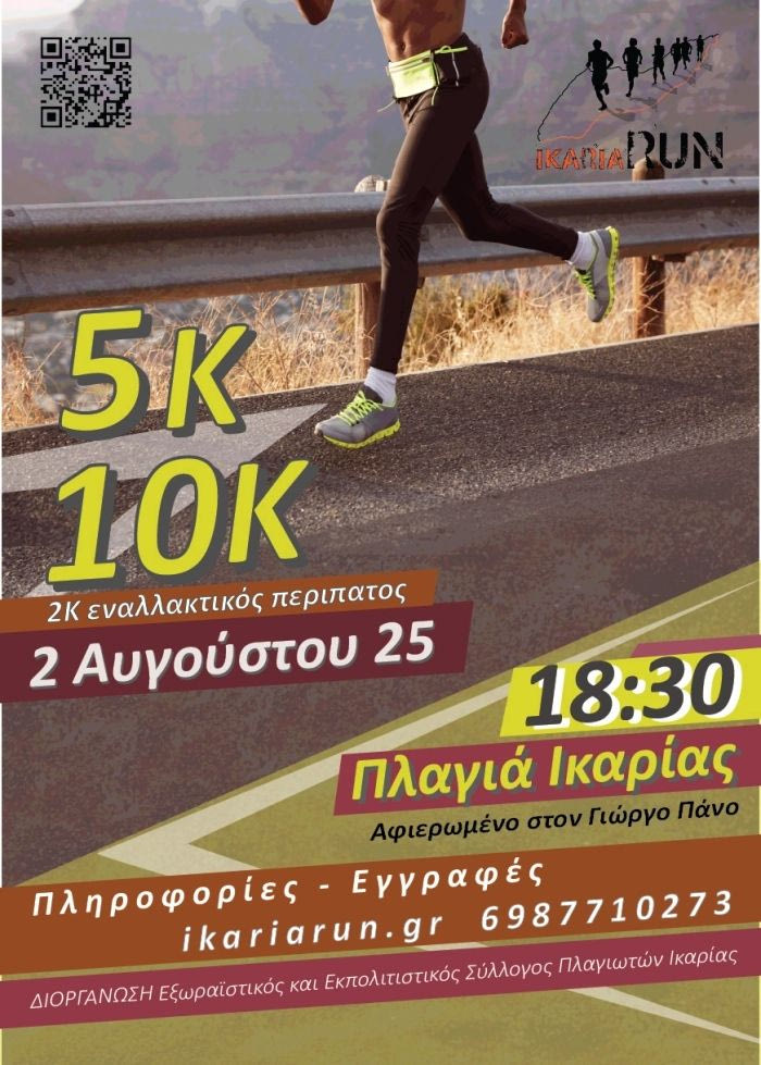 Το Σάββατο 2 Αυγούστου 2025 (18:30) θα διεξαχθεί στην Πλαγιά Ικαρίας το 12ο Ikaria Run με αγώνες 10 χλμ. και 5 χλμ.
