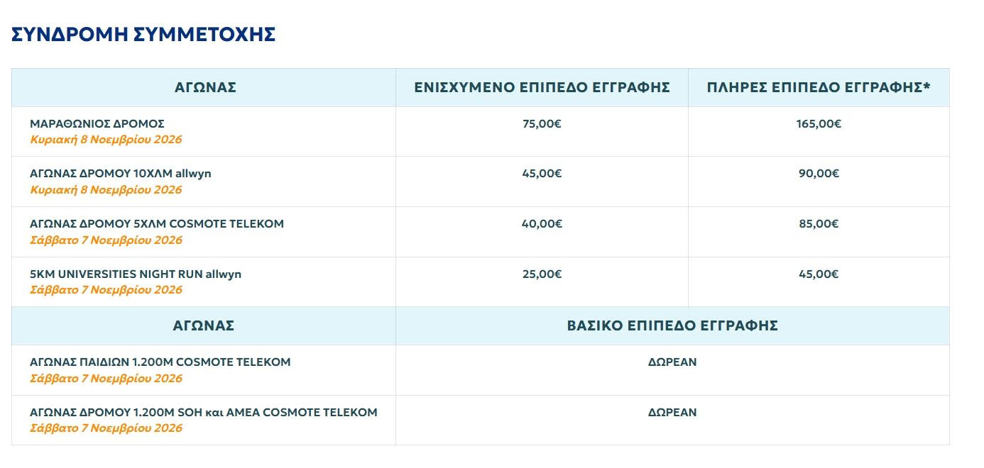 Το σύστημα εγγραφών θα κλείσει το αργότερο μέχρι τις 25 Σεπτεμβρίου 2026 εφόσον δεν έχουν συμπληρωθεί νωρίτερα τα όρια συμμετοχής στον εκάστοτε αγώνα.