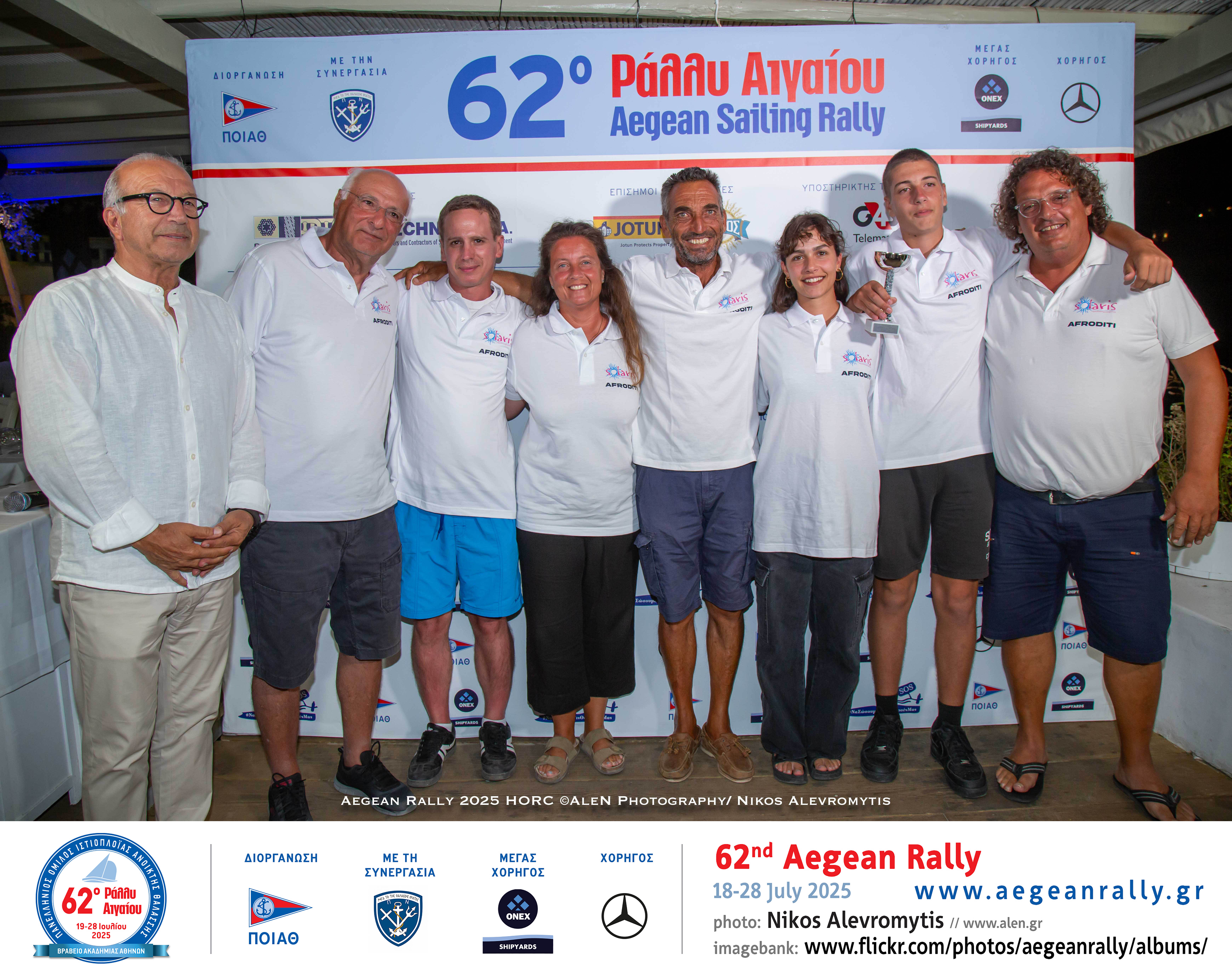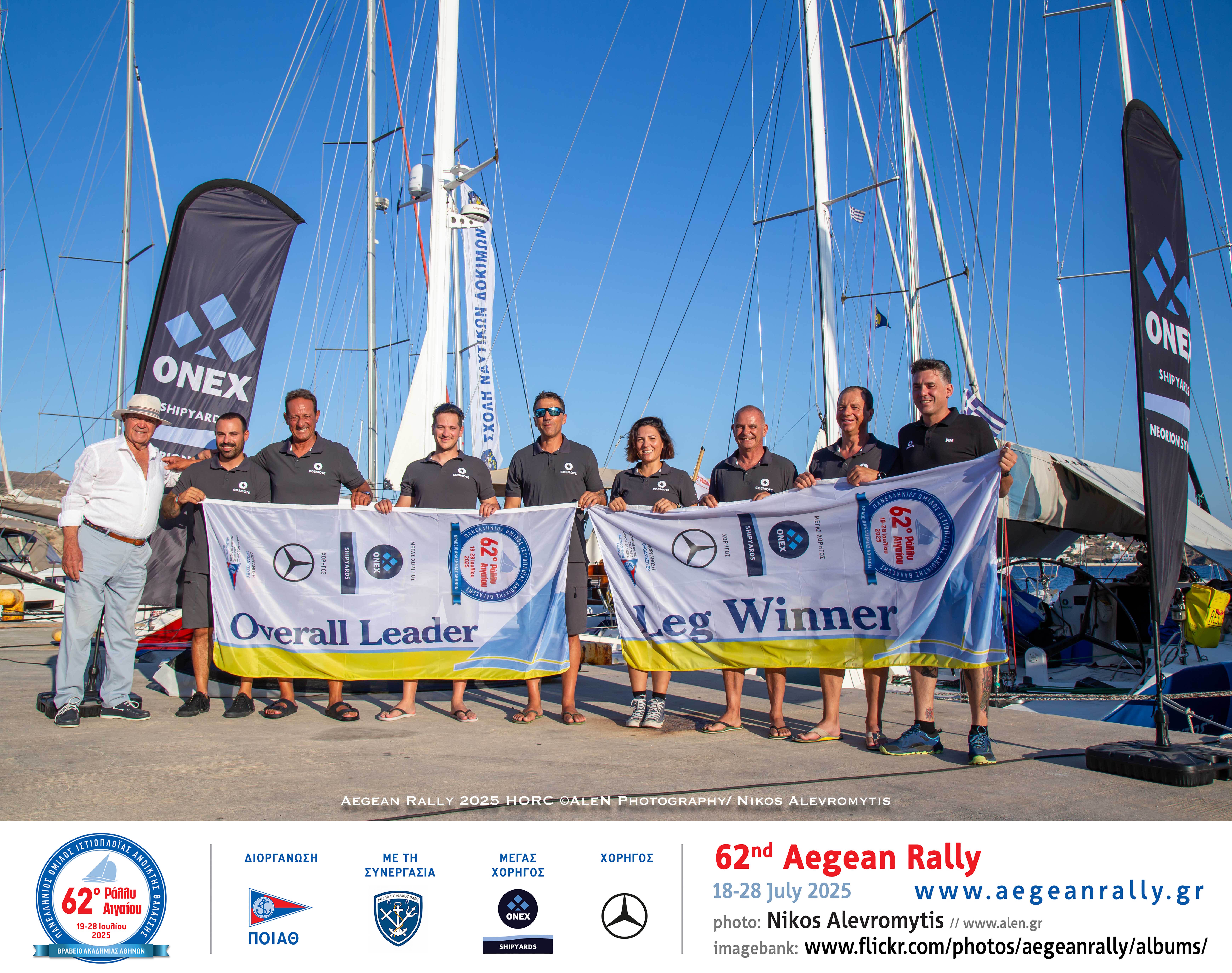 Μέγας Χορηγός του αγώνα είναι ο Όμιλος ONEX SHIPYARDS & TECHNOLOGIES που αποτελεί ηγετική δύναμη στους τομείς της ναυπηγικής βιομηχανίας, της άμυνας, των επενδύσεων και της τεχνολογίας, προάγοντας την ανάπτυξη, την αριστεία και την καινοτομία στην Ελλάδα και την Ανατολική Μεσόγειο. Στο παρακάτω σύνδεσμο οι συμμετοχές των σκαφών στο 62ο Ράλλυ Αιγαίου: