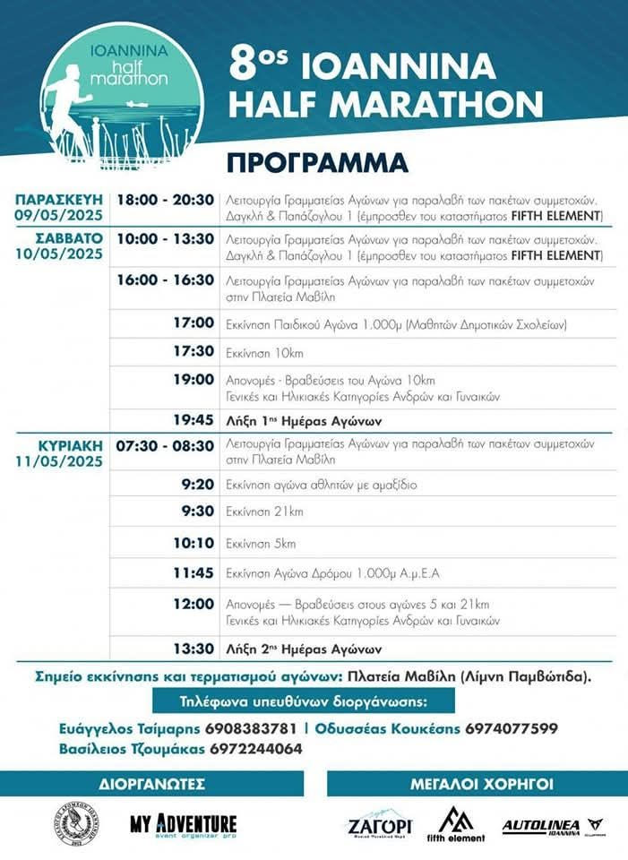 Αλλαγές στο πρόγραμμα του 8ου Ημιμαρωθωνίου Ιωαννίνων την Κυριακή 11 Μαϊου.