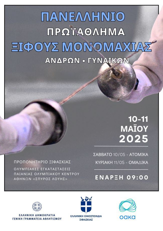 Το Πανελλήνιο Πρωτάθλημα ξίφους μονομαχίας ανδρών/γυναικών είναι το πρώτο από τα τρία διαδοχικά Σαββατοκύριακα αγώνων που θα κορυφώσουν την εγχώρια αγωνιστική δράση για την ελληνική ξιφασκία.