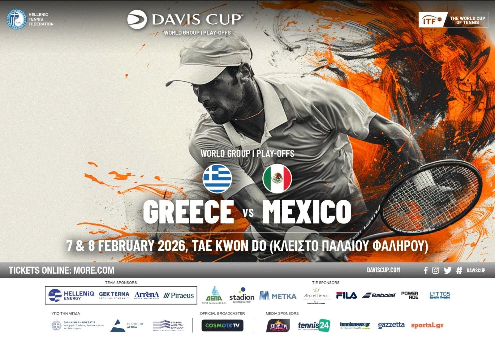 Η αντίστροφη μέτρηση για τη σπουδαία αναμέτρηση της Ελλάδας με το Μεξικό στο Davis Cup έχει ξεκινήσει, καθώς ανακοινώθηκαν επίσημα οι συνθέσεις των δύο ομάδων ενόψει των αγώνων που θα διεξαχθούν στις 7 και 8 Φεβρουαρίου στο Κλειστό Γήπεδο Τάε Κβον Ντο.