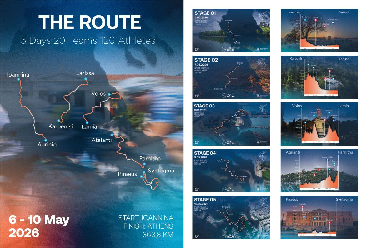 Με μια εντυπωσιακή εκκίνηση από τα Ιωάννινα, με την εκπληκτική λίμνη, μέχρι και το Αγρίνιο, αλλά και το 2ο ετάπ από το Καρπενήσι μέχρι τη Λάρισα και το 3ο από τον Βόλο, μέχρι τη Λαμία, περνώντας από τις Θερμοπύλες, τον Γοργοπόταμο, μέχρι και την ανάβαση της Πάρνηθας στο 4ο ετάπ με έναρξη από Αταλάντη, και το πέρασμα από τον Πειραιά στο τελευταίο ετάπ στις 10 Μαίου, με το μεγάλο φινάλε στο Σύνταγμα.