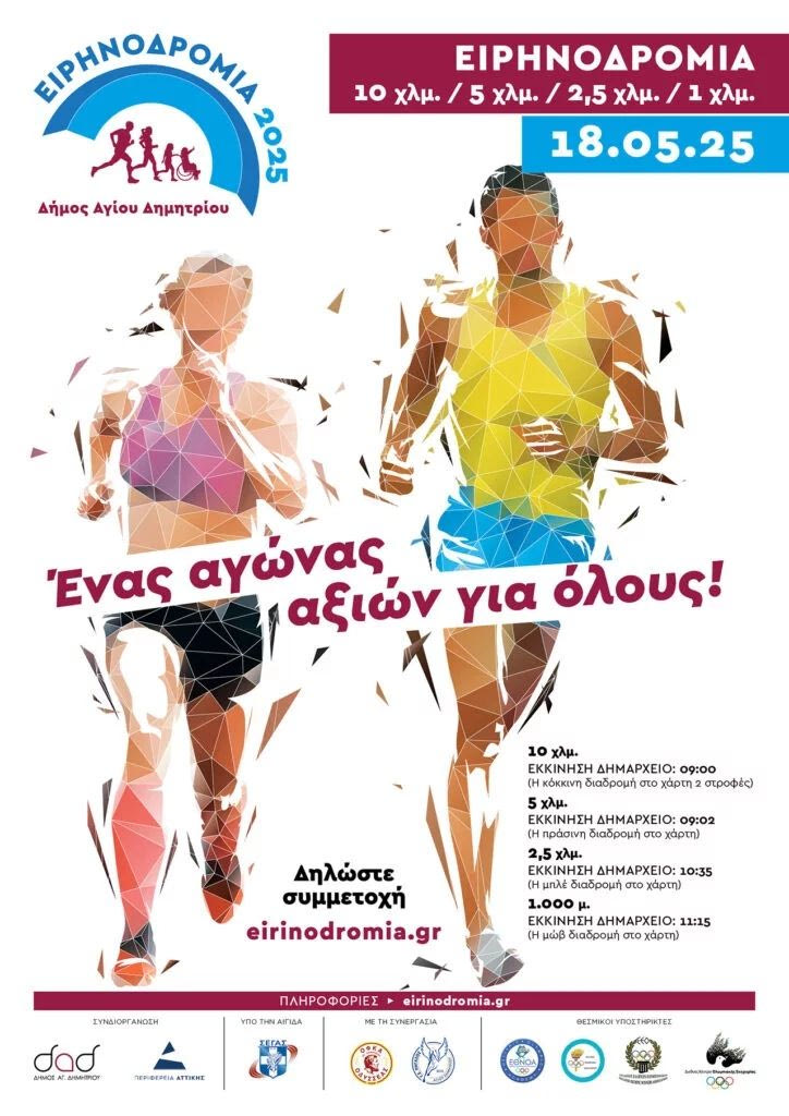Ξεκίνησαν οι εγγραφές για την Ειρηνοδρομία 2025 η οποία θα πραγματοποιηθεί την Κυριακή 18 Μαΐου “Τρέχουμε για τα παιδιά μας τρέχουμε για έναν καλύτερο κόσμο”.