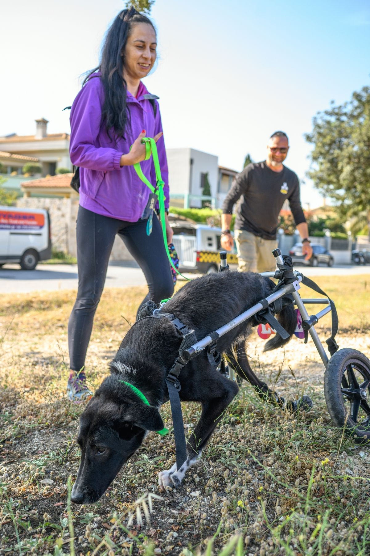 Εκείνο που με άγγιξε όμως περισσότερο ήταν ότι μαζί μας έτρεξαν και σκυλιά με αναπηρίες – κάποια με αμαξίδια, κάποια με δυσκολίες στο περπάτημα.