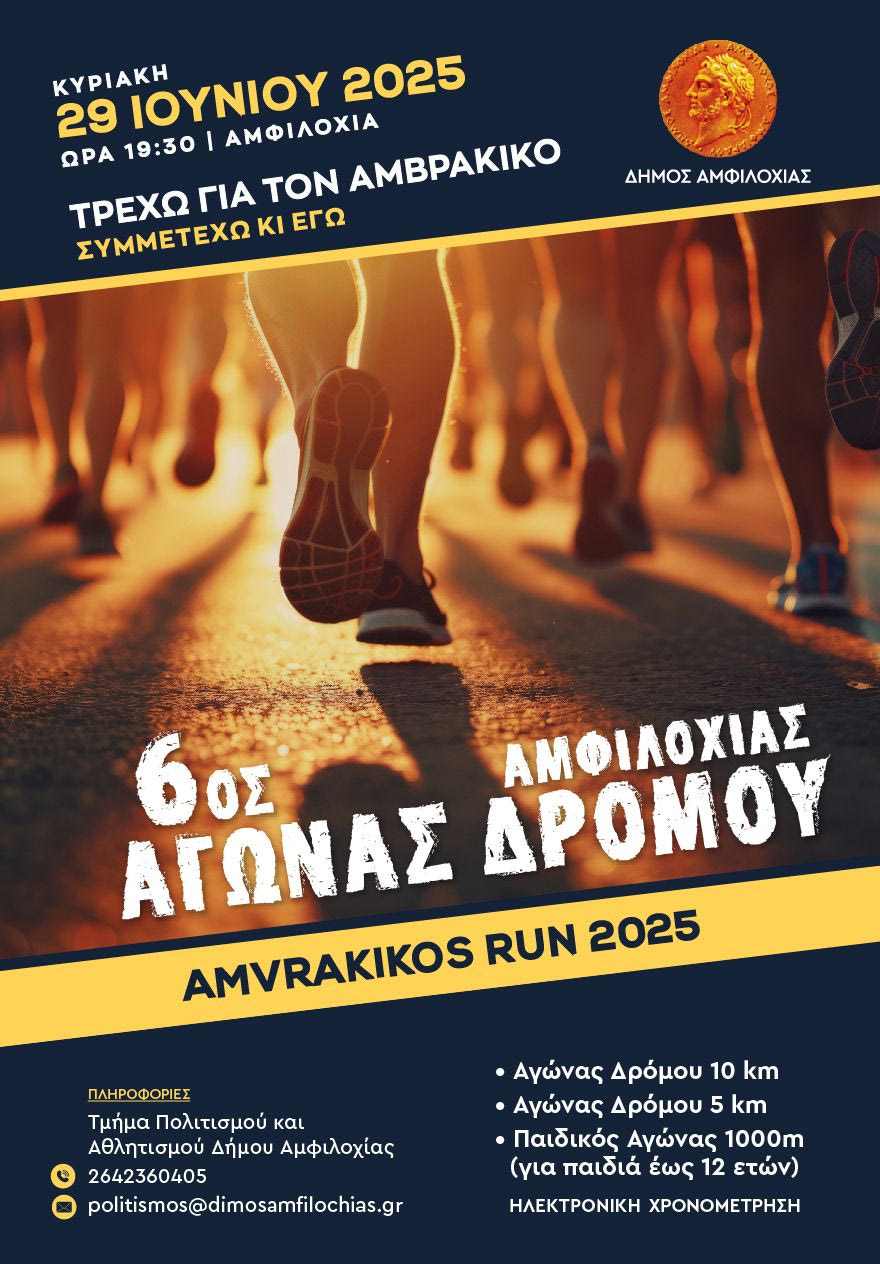 Ο 6ος Αγώνας Δρόμου Amvrakikos Run διεξάγεται στις 29 Ιουνίου με δωρεάν συμμετοχή.