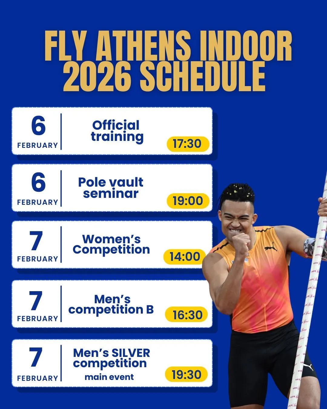 Αυτές είναι οι συμμετοχές στο Fly Athens indoor 2026 που θα γίνει το Σάββατο 7 Φεβρουαρίου στην Παιανία.