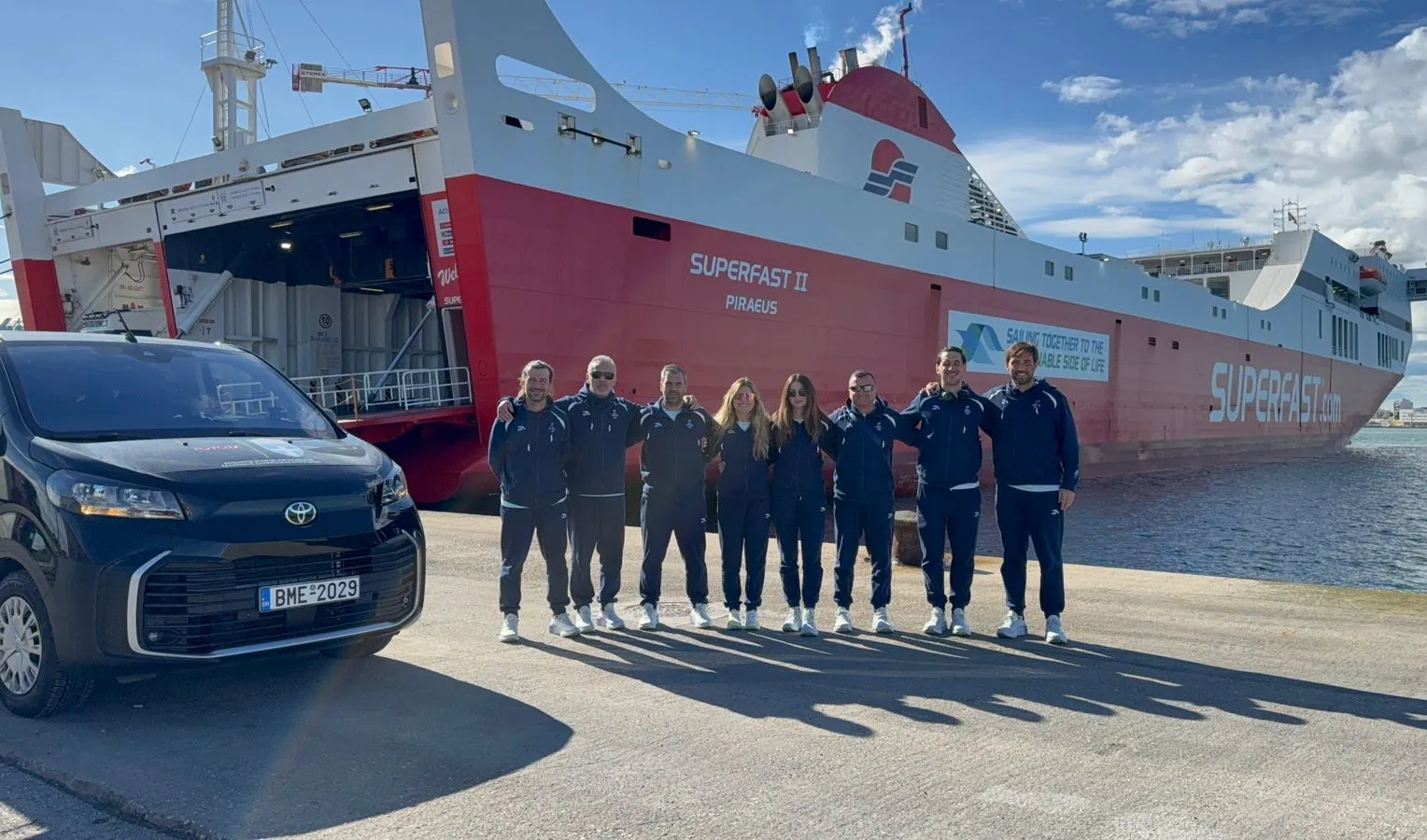 H ελληνική αποστολή έφτασε στην Ιταλία από την Ηγουμενίτσα με το πλοίο Superfast II του Attica Group με τον Αρχηγό Αποστολής Δημοσθένη Γυρούση και με όλο τον εξοπλισμό που χρειάζονται οι Ελληνες αθλητές.