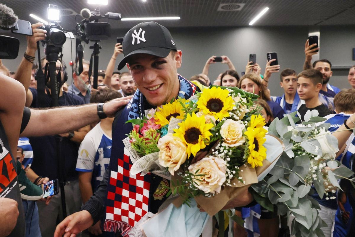 Πλήθος κόσμου ανέμενε τον Έλληνα πρωταθλητή στο “Ελ. Βενιζέλος” και με την άφιξή του στήθηκε μία μικρή γιορτή.