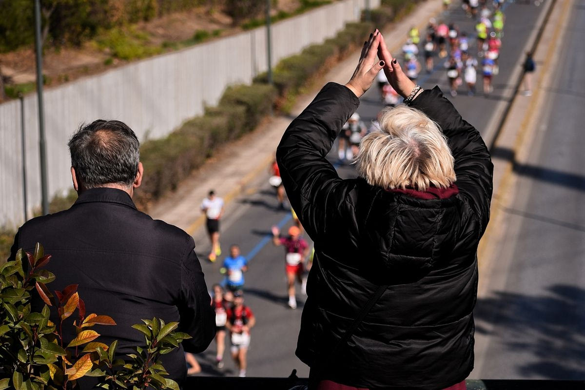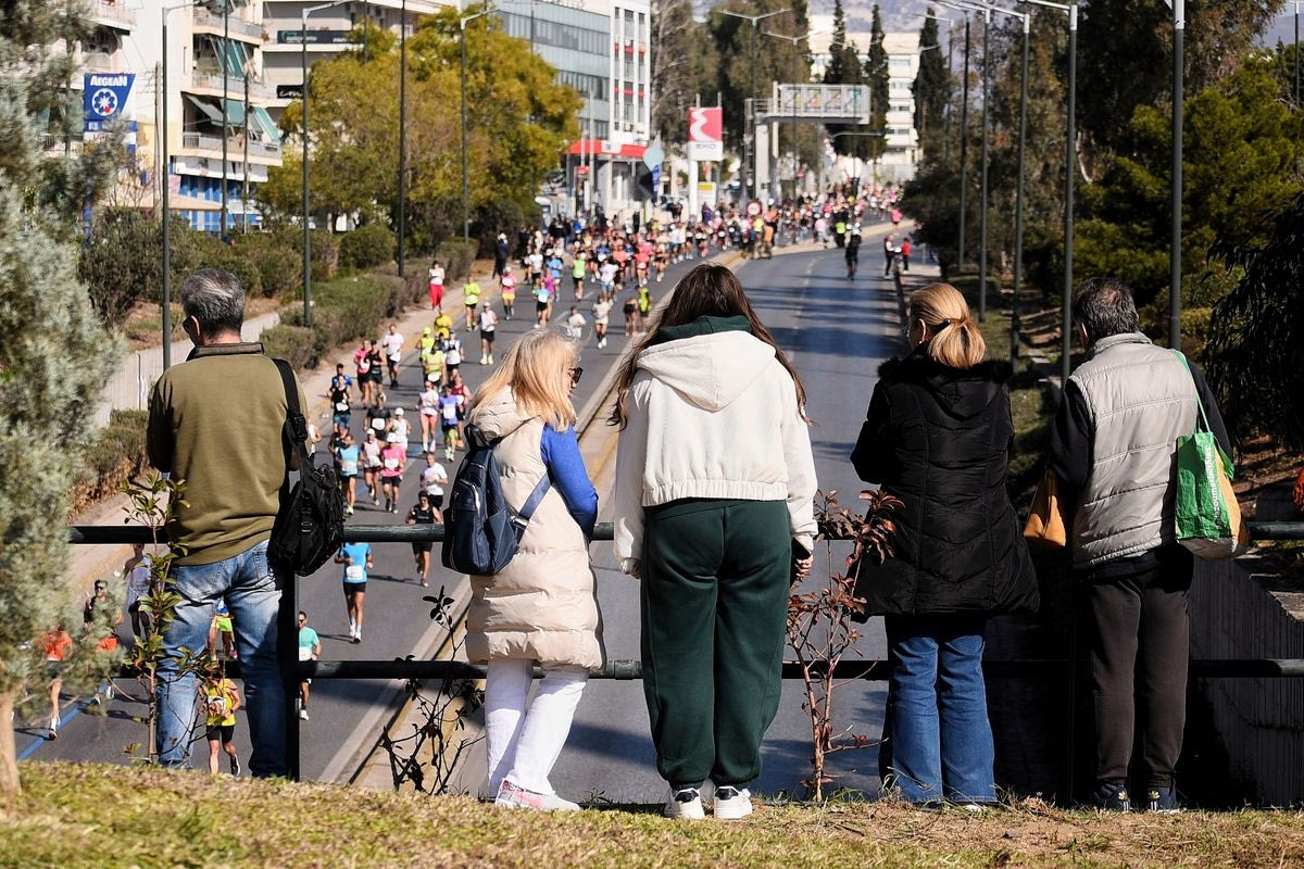 Από το Σύνταγμα μέχρι το Παγκράτι, η πόλη πάλλεται. Οι δρόμοι είναι γεμάτοι κόσμο, σημαίες, τύμπανα και μουσικές, ενώ τα καφέ και τα μπαλκόνια γεμίζουν θεατές που ενθαρρύνουν τους δρομείς στα τελευταία μέτρα.
