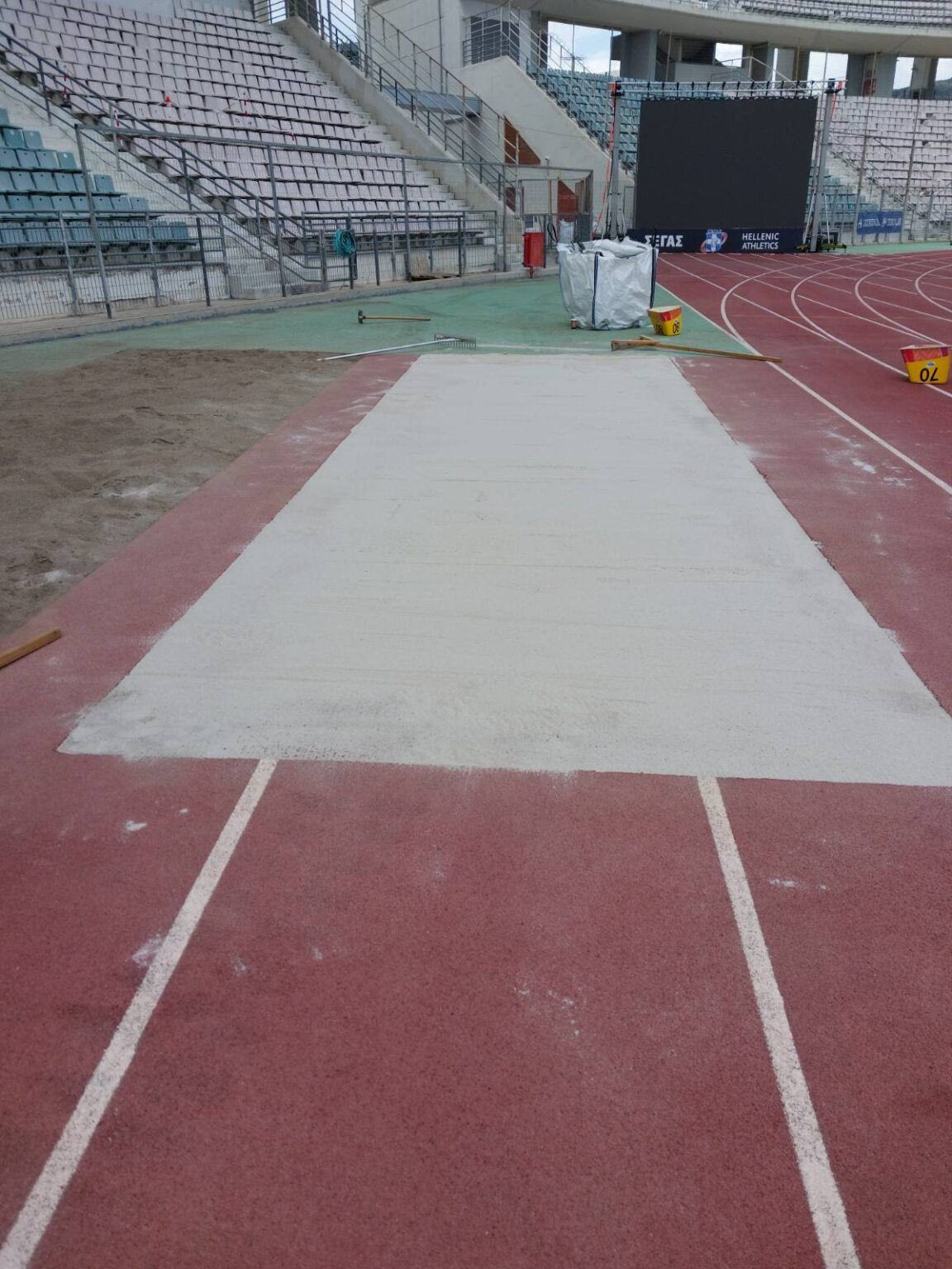 Την Πέμπτη 31 Ιουλίου ολοκληρώθηκαν οι εργασίες στο Πανθεσσαλικό, κι έτσι οι αθλητές των οριζόντιων αλμάτων θα απολαύσουν τη μοναδική εμπειρία της προσγείωσης σε χαλαζιακή άμμο, όπως συμβαίνει στις κορυφαίες διοργανώσεις, δηλαδή στους Ολυμπιακούς Αγώνες, στα Παγκόσμια και στα Ευρωπαϊκά πρωταθλήματα.