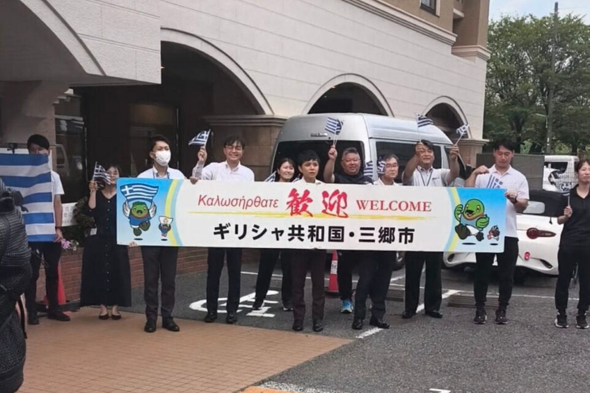 Η αποστολή μας αναχώρησε από την Αθήνα το μεσημέρι της Τρίτης (2/9) και στις 12:25 το μεσημέρι – ώρα Τόκιο – της Τετάρτης (3/9) “πάτησε” Ιαπωνία. Εκεί τους περίμενε και η εγκάρδια υποδοχή από το Δήμο Μισάτο με ελληνικές σημαίες και πανό έξω από από το ξενοδοχείο.