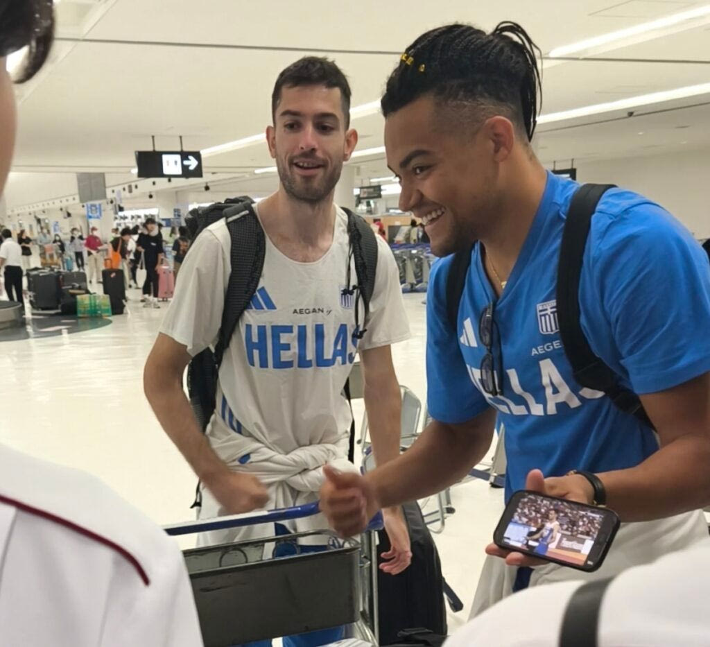 Θερμή υποδοχή βρήκαν τα μέλη της ομάδας και στο αεροδρόμιο από εργαζόμενους και απλούς πολίτες, καθώς δεν ήταν λίγοι εκείνοι που όταν αναγνώρισαν τον “χρυσό” ολυμπιονίκη του Τόκιο Μίλτο Τεντόγλου και τον “χάλκινο” ολυμπιονίκη του Παρισιού, Εμμανουήλ Καραλή, έσπευσαν να ευχηθούν στους ίδιους και σε όλη την αποστολή καλή επιτυχία.