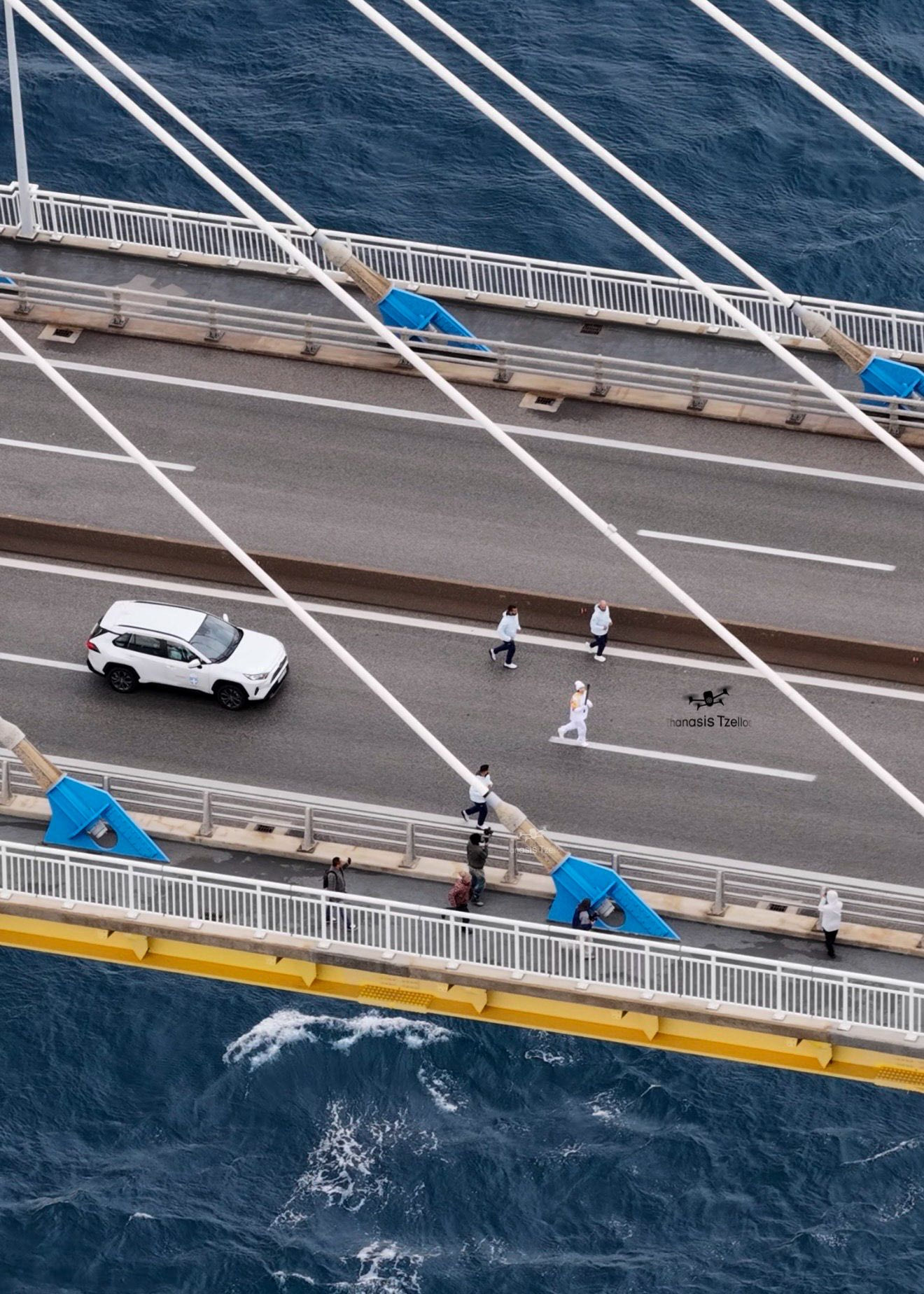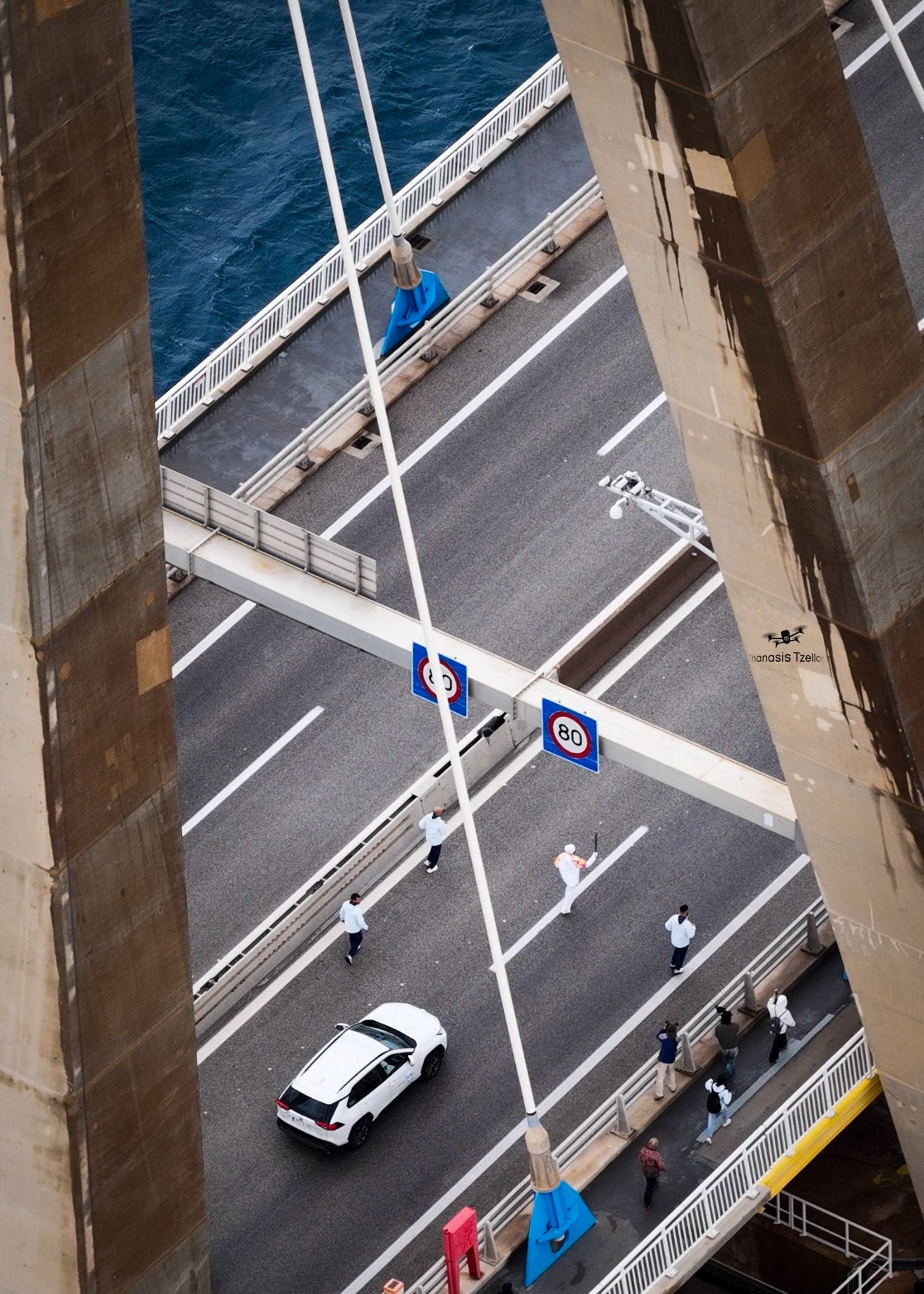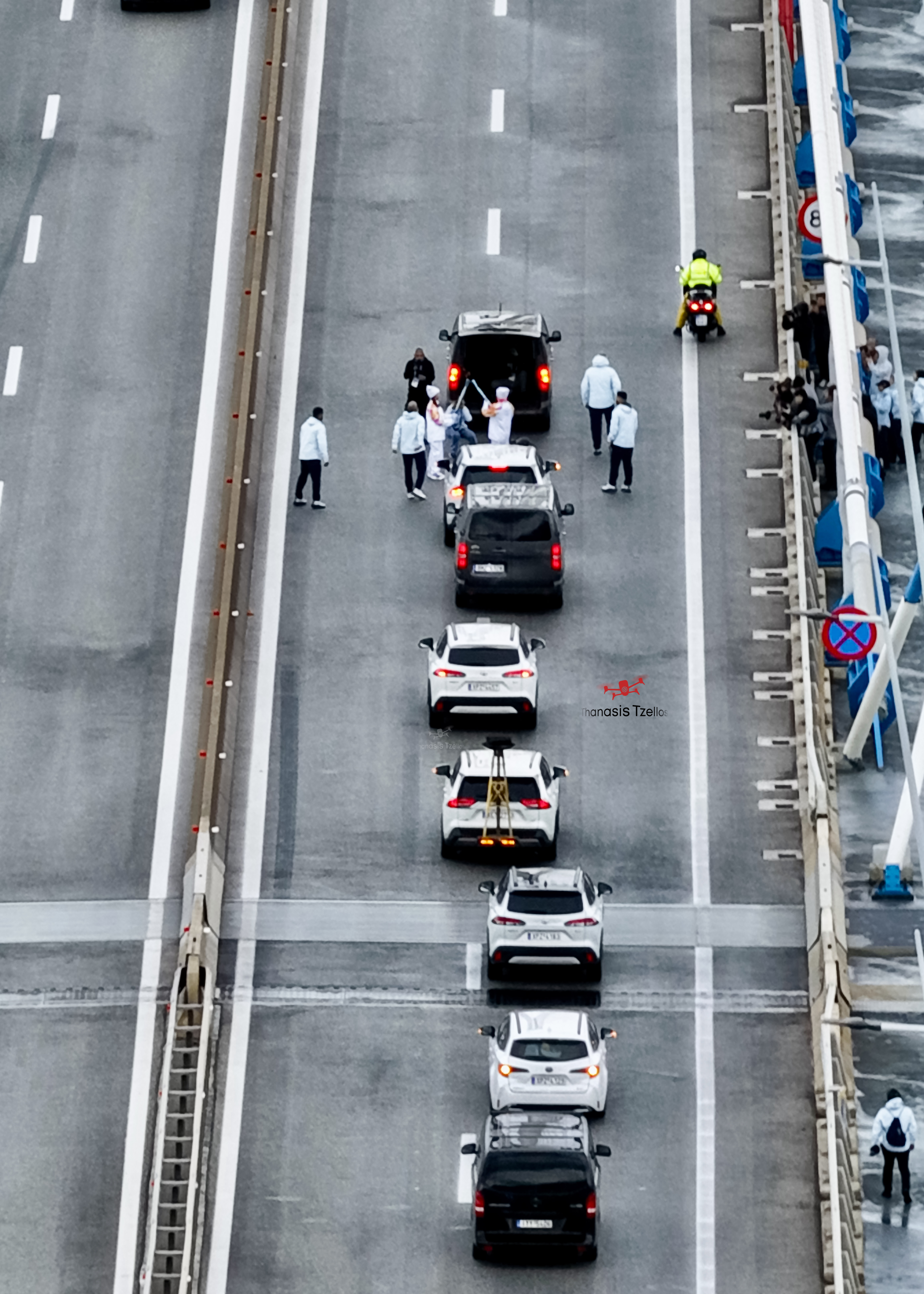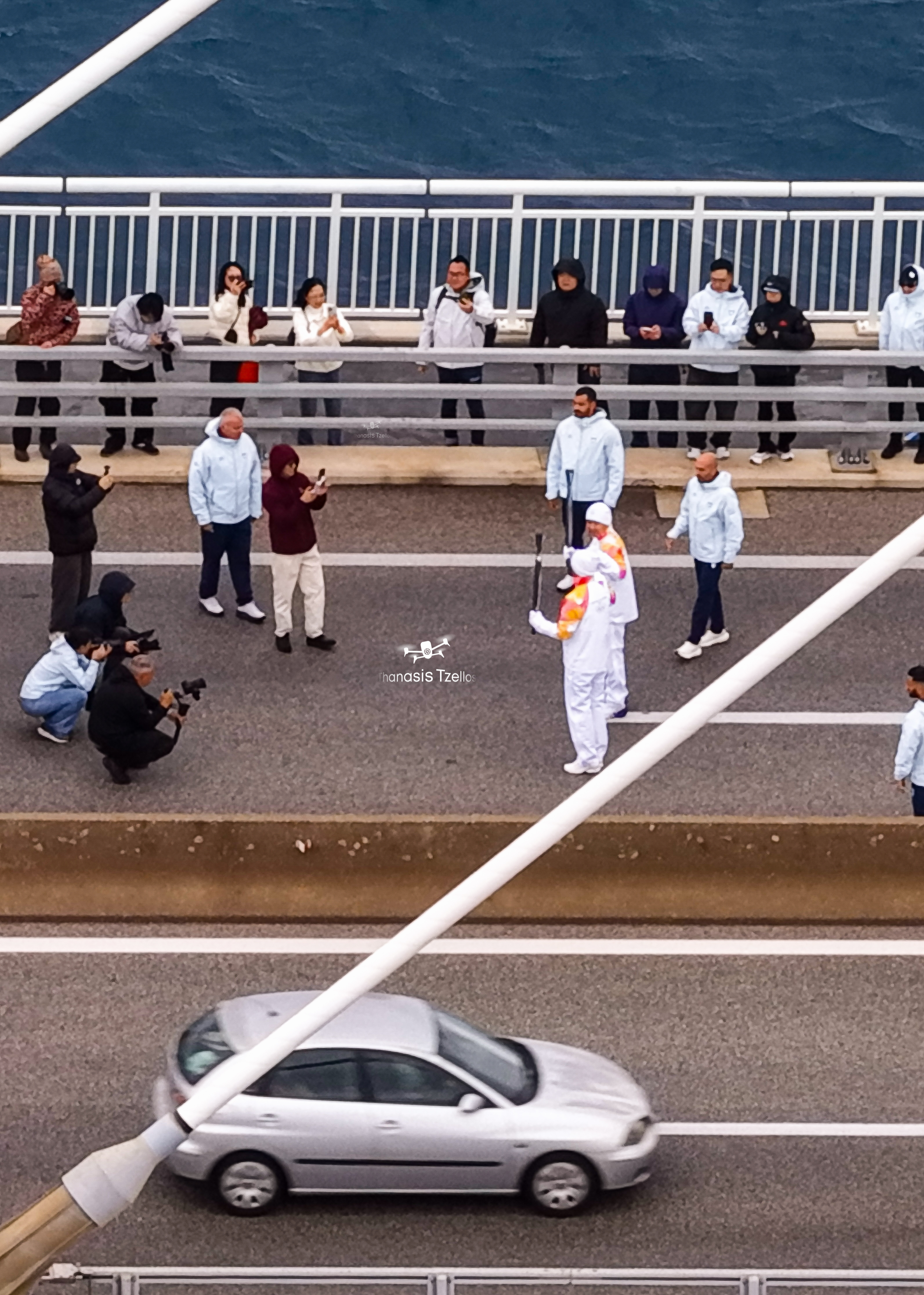 Η Λαμπαδηδρομία για τους Χειμερινούς Ολυμπιακούς Αγώνες συνεχίζεται και πρόσφερε μερικά εντυπωσιακά στιγμιότυπα από ψηλά, στη Γέφυρα Ρίου Αντιρίου.
