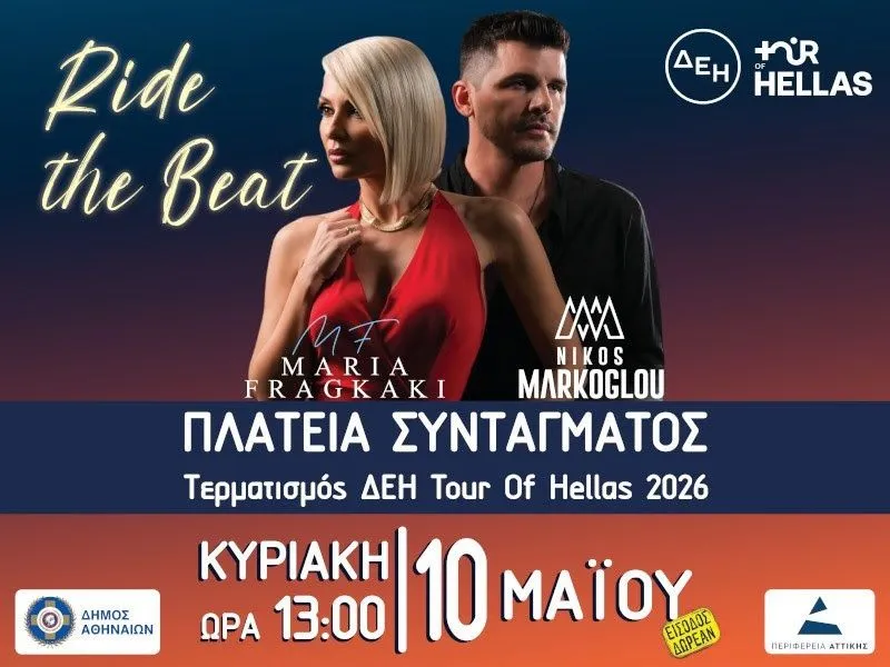 Από τις 12:00, το Ride the Beat μετατρέπει το Σύνταγμα σε σημείο συνάντησης για όλη την πόλη, με τους Stavento, την Ήβη Αδάμου, την Evangelia, την Kira May Cry και DJ sets με τον Νίκο Μάρκογλου και τη Μαρία Φραγκάκη, σε ένα εντυπωσιακό φινάλε για τον ΔΕΗ Tour of Hellas 2026.