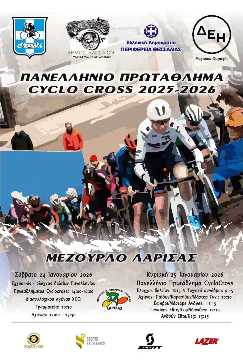 Η κορυφαία εγχώρια διοργάνωση του cyclo-cross πραγματοποιείται σε συνεργασία με τον Ποδηλατικό Γυμναστικό Σύλλογο Λάρισας, με τη συμπαράσταση του Δήμου Λαρισαίων και της Περιφέρειας Θεσσαλίας, και αναμένεται να συγκεντρώσει τους καλύτερους Έλληνες και Ελληνίδες αθλητές και αθλήτριες του αγωνίσματος.