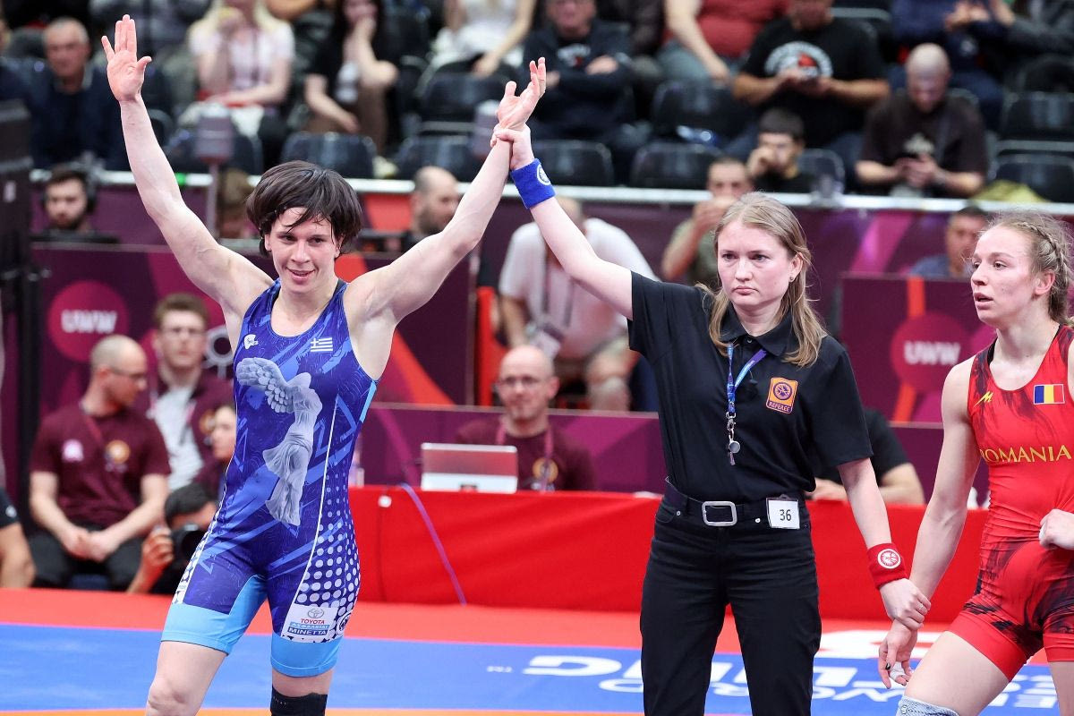 Η Μεγάλη Κυρία της ελληνικής πάλης υπέταξε με 4-3 το νούμερο 1 της παγκόσμιας κατάταξης, τη Ρουμάνα Άνα, και πρόσθεσε στη συλλογή της το μοναδικό μετάλλιο, χρυσό, που της έλειπε από το Ευρωπαϊκό.