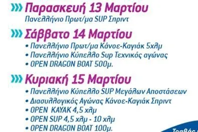 Το πρόγραμμα περιλαμβάνει αγώνες Canoe Kayak, SUP και Dragon Boats ως μέρος μιας σειράς αγωνισμάτων για όλους, ενώ παράλληλα διεξάγονται αγώνες Πανελληνίου Πρωταθλήματος και Κυπέλλου με συμμετοχή αθλητών/τριων της Ομοσπονδίας.