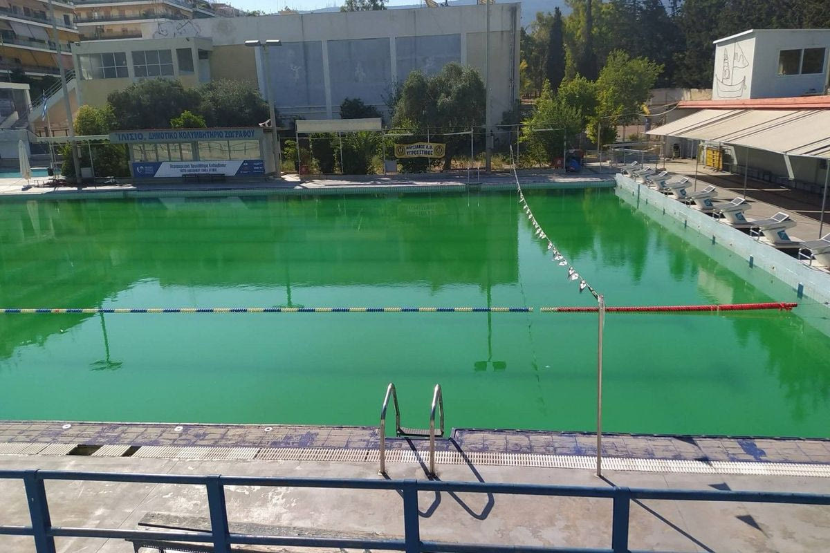 Πρωτόγνωρες εικόνες για πισίνα στο Ιλίσιο Κολυμβητήριο που ανήκει στο Δήμο Ζωγράφου καθώς λόγω βλάβης, το νερό έγινε πράσινο!