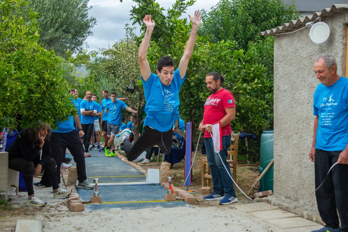 Ο Μίλτος Τεντόγλου συμμετείχε μαζί με άλλους πρωταθλητές σε έναν ιδιαίτερο αγώνα που έγινε στην αυλή του σπιτιού ενός φίλου του κλασικού αθλητισμού.
