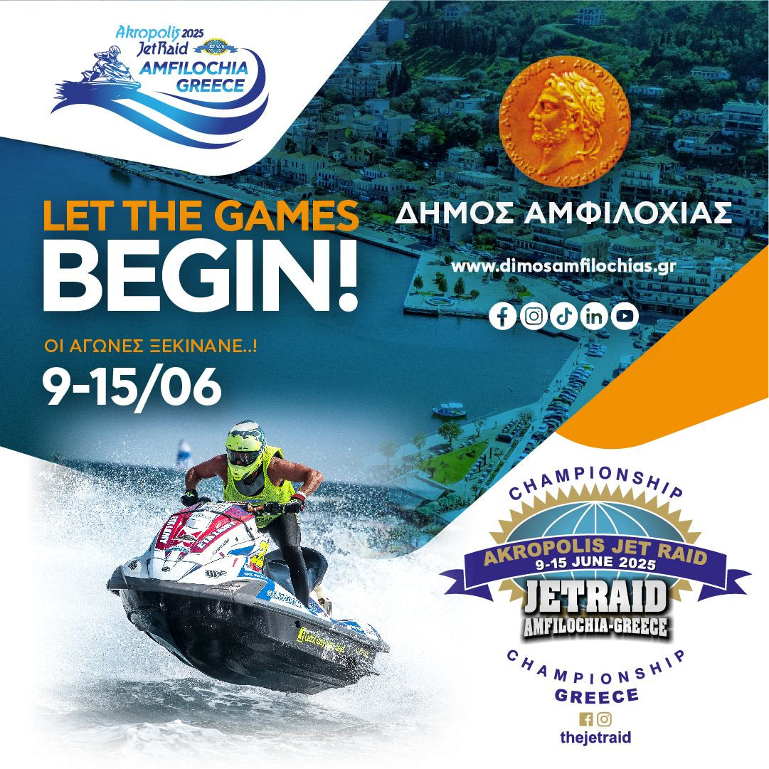 Ο Δήμος Αμφιλοχίας ετοιμάζεται να υποδεχθεί ένα κορυφαίο διεθνές αθλητικό γεγονός, τους αγώνες τζετ σκι “Akropolis Jet Raid 2025 – Amfilochia, Greece”, οι οποίοι θα πραγματοποιηθούν από τις 9 έως τις 15 Ιουνίου 2025.