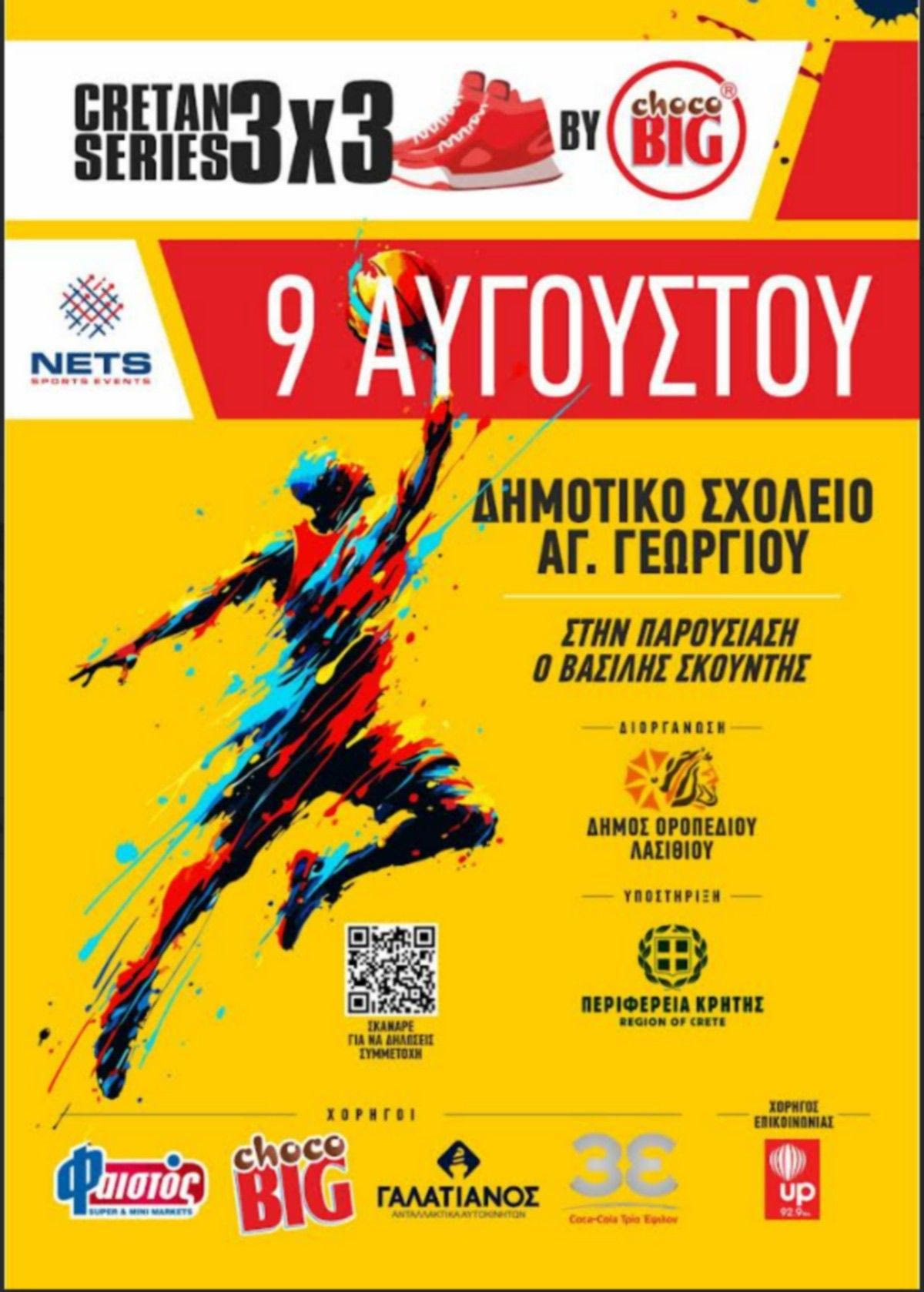 Το έβδομο κατά σειρά Τουρνουά 3×3 Basketball Cretan Series by choco BIG συνδιοργανώνεται από τον Δήμο Οροπεδίου Λασιθίου, την Περιφέρεια Κρήτης και τη Nets Sports Events.