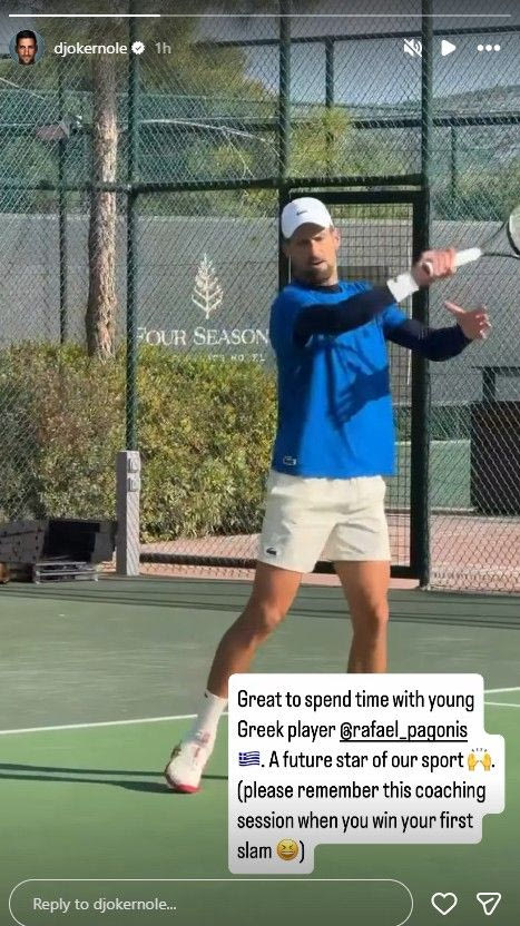 Μάλιστα, ο κορυφαίος Σέρβος τενίστας έγραψε χαρακτηριστικά ότι ο νεαρός Έλληνας είναι ένα μελλοντικό αστέρι του αθλήματος, αστειευόμενος και παρακαλώντας τον να τον θυμηθεί, όταν κερδίσει το πρώτο του σλαμ.
