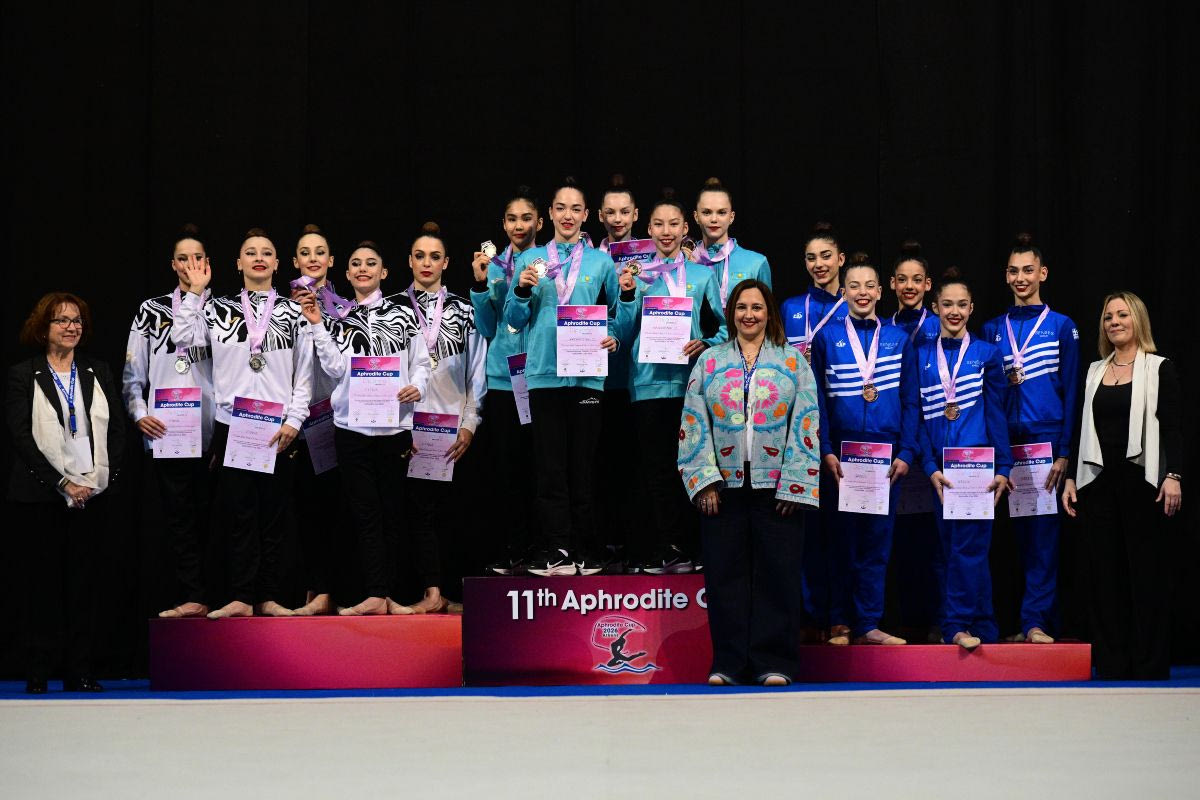 Η κατάκτηση του χάλκινου μεταλλίου στο πρόγραμμα με 3 Στεφάνια / 2 ζεύγη Κορύνες επιβράβευσε την προσπάθεια της ανανεωμένης Εθνικής Ανσάμπλ Γυναικών στην πρώτη επίσημη εμφάνισή της στο φινάλε του 11ου Διεθνούς Τουρνουά Ρυθμικής Γυμναστικής Aphrodite Cup.