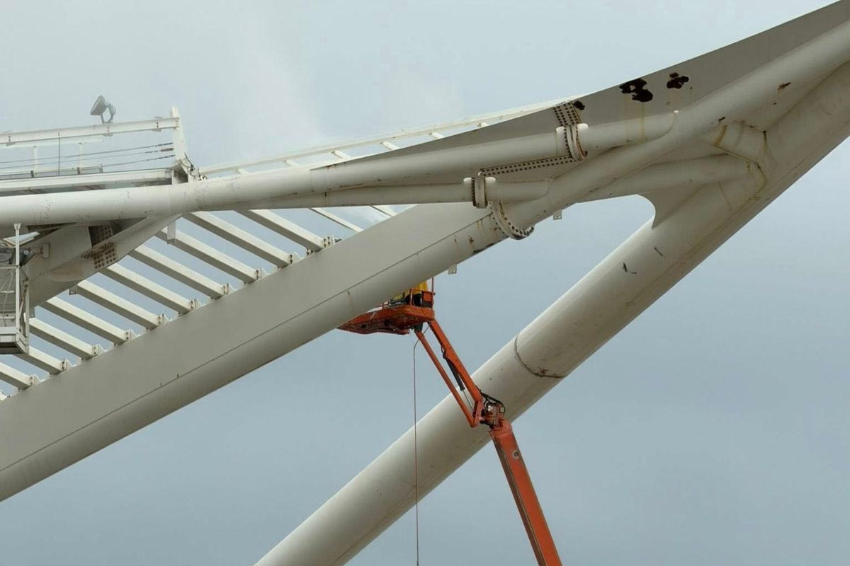 Στο βορειοανατολικό άνω τόξο του στεγάστρου του Κεντρικού Σταδίου του ΟΑΚΑ πραγματοποιούνται εργασίες ελέγχου και συντήρησης των κοχλιωτών συνδέσεων, με στόχο τη διασφάλιση της στατικής επάρκειας, της μακροχρόνιας ανθεκτικότητας και της συνολικής λειτουργικότητας του μεταλλικού φορέα.