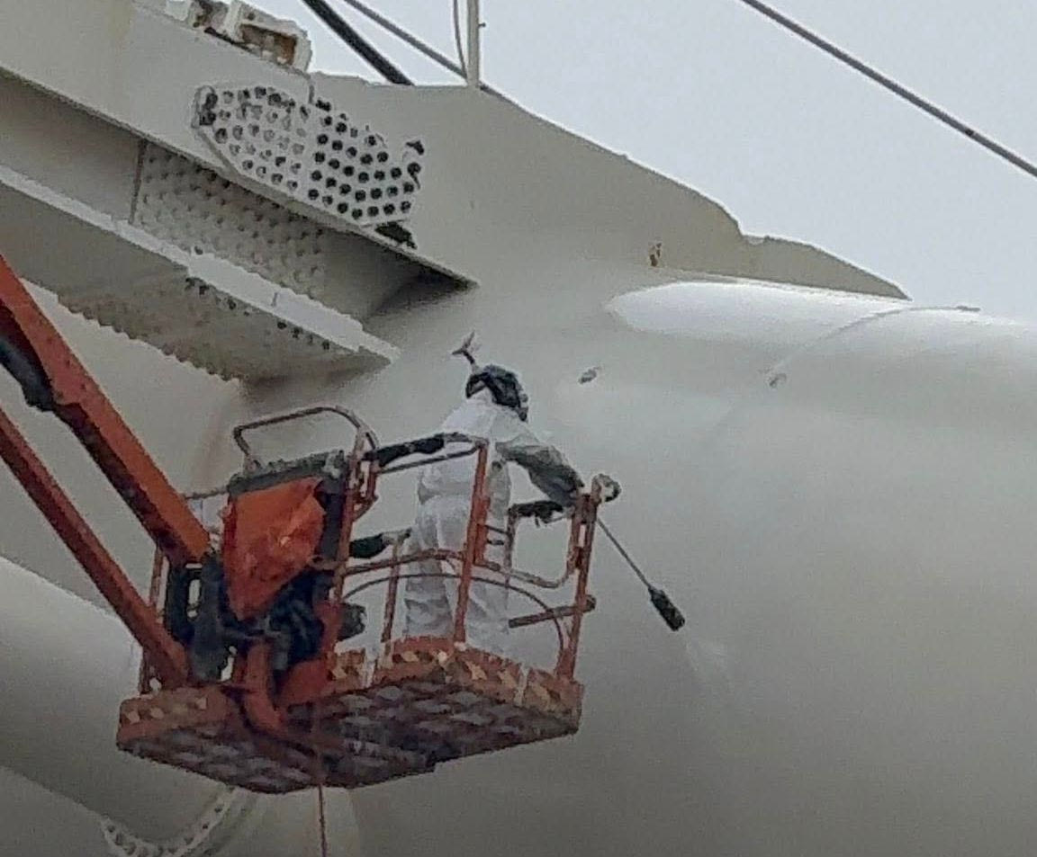 Η μέθοδος αυτή εξασφαλίζει μηχανικό καθαρισμό χωρίς επιφανειακές αλλοιώσεις, διατηρώντας την ακεραιότητα του χάλυβα και δημιουργώντας την κατάλληλη επιφάνεια πρόσφυσης για την επόμενη φάση επαναβαφής. Μετά την υδροβολή, εφαρμόζεται πολυεπίπεδο σύστημα βαφής υψηλής αντοχής, με αντιδιαβρωτικά και ελαιοφοβικά χαρακτηριστικά, το οποίο ανταποκρίνεται στις κλιματικές και περιβαλλοντικές απαιτήσεις της περιοχής.