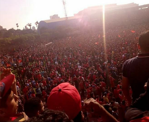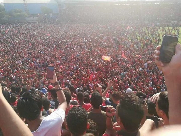 Οι οπαδοί δεν πτοήθηκαν και συνέχισαν να φωνάζουν και να τραγουδούν συνθήματα, στην προσπάθεια ενίσχυσης της ψυχολογίας των ποδοσφαιριστών του Χοσάμ ελ Μπαντρί.