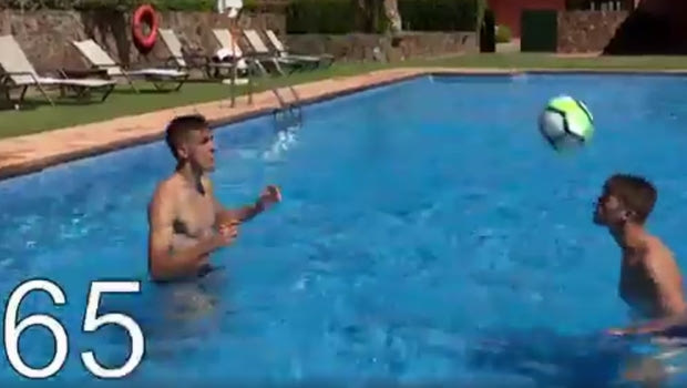 Δύο ποδοσφαιριστές της Μπαρτσελόνα Β αποφάσισαν να πάνε ένα βήμα παραπέρα στις διακοπές τους και να δημιουργήσουν το... κεφαλιά challenge.