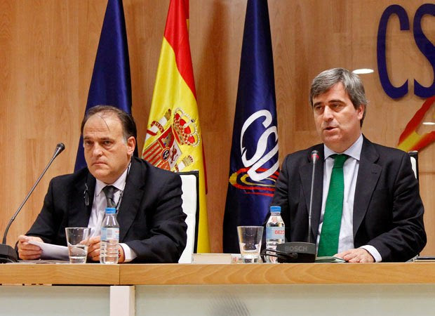 Χαβιέρ Τέμπας (αριστερά), πρόεδρος της ισπανικής Λίγκας και Μιγκέλ Καρδενάλ, πρόεδρος του ανώτατου συμβουλίου του αθλητισμού