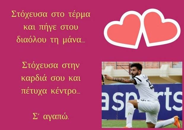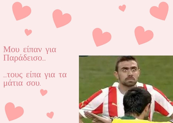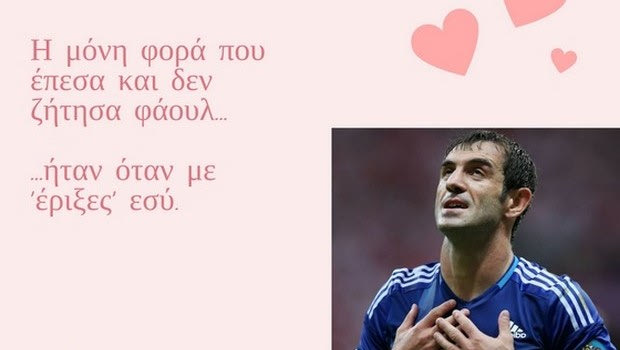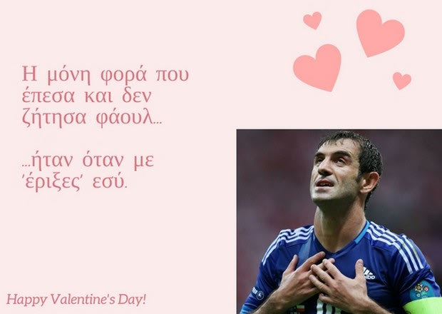 Για τσέκαρε τις κάρτες του Αγίου Βαλεντίνου που θα έφτιαχναν οι ποδοσφαιρικές μορφές της χώρας μας, αν είχαν λίγο παραπάνω χρόνο και δεν τους τον έτρωγε όλο το τόπι (και τα μπουζούκια).