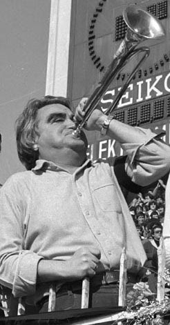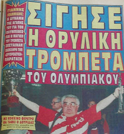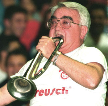 Έγινε “ιερό σύμβολο” της εξέδρας στο Καραϊσκάκη. Μόλις ακουγόταν η «θρυλική» τρομπέτα, οι πάντες σιωπούσαν. Τσιγάρα, καφέδες, σάντουιτς, ότι κρατούσε ο καθένας εκείνη την ώρα στο χέρι του, έπεφτε όπως – όπως στο κρύο μπετόν . Τα χέρια σηκώνονταν ψηλά! Μικροί, μεγάλοι, όλοι είχαν λάβει το μουσικό παράγγελμά του. Εκείνος έπαιζε με την τρομπέτα του το γνωστό “πολεμικό” παιάνα, για να ακολουθήσουν έπειτα οι οπαδοί με το γνωστό “Ο-λυ-μπιακός, Ο-λυ-μπιακός”.