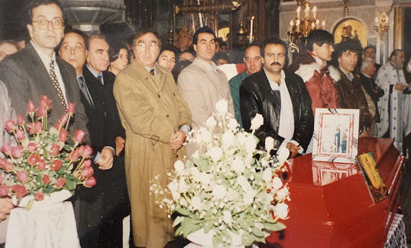 Χιλιάδες κόσμου τον συνόδευσαν στην τελευταία του κατοικία στο κοιμητήριο των Αγίων Αναργύρων. Στην κηδεία του βρέθηκε πλήθος κόσμου, μεταξύ των οποίων και ο πρώην Πρωθυπουργός, Αντώνης Σαμαράς. Ολοι ήταν συγκλονισμένοι βλέποντας μπροστά τους το κόκκινο φέρετρο, που είχε ζητήσει ως τελευταία επιθυμία, από τη σύζυγό του, Αριστέα Δουρίδα.