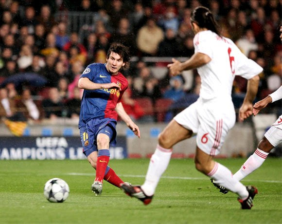 Ο Μέσι πετυχαίνει το ένα από τα δυο προσωπικά του γκολ στο 4-0 της Μπαρτσελόνα επί της Μπάγερν