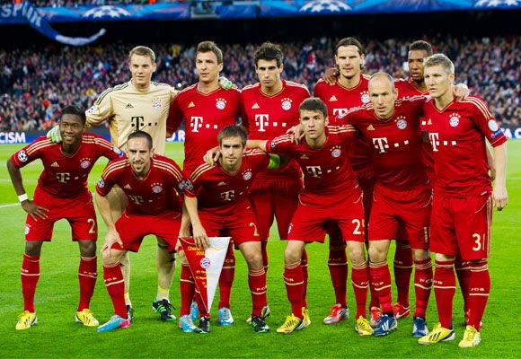 Η Μπάγερν που διέλυσε 0-3 την Μπαρτσελόνα στην τελευταία της επίσκεψη στο “Καμπ Νόου”. Πίσω, από αριστερά: Νόιερ, Μάντζουκιτς, Χάβι Μαρτίνεθ, Βαν Μπούιτεν, Μπόατενγκ. Μπροστά, από αριστερά: Αλάμπα, Ριμπερί, Λαμ, Μίλερ, Ρόμπεν, Σβάινσταϊγκερ