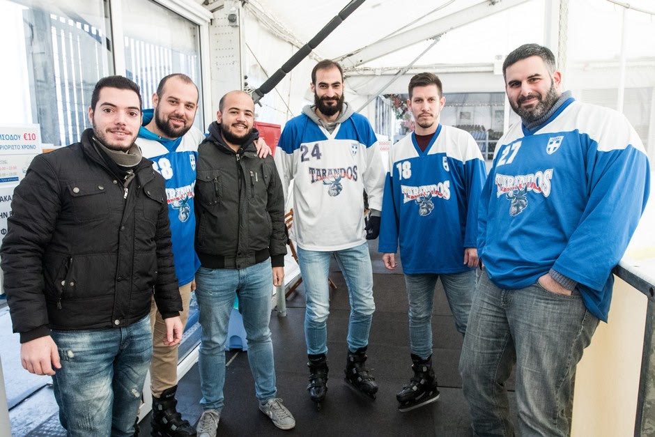 Οι προπονήσεις λοιπόν, του “Τάρανδου” διεξάγονται κάθε σαββατοκύριακο, από τις 08.00 έως τις 11.00. Ναι, το πρωί, γιατί μετά τις 11.00, το μεγαλύτερο μόνιμο παγοδρόμιο της χώρας “ανοίγει” στο κοινό “ενώ γίνεται και μια ακόμη προπόνηση, κάθε Τρίτη το βράδυ από τις 22.30 έως τις 00.30”, μας εξηγεί ο Νικόλαος Μπλιάγκος, γενικός γραμματέας του συλλόγου. Το ραντεβού δόθηκε στο παγοδρόμιο “Athens Heart” (Πειραιώς 186, Ταύρος), στις 09.00 το πρωί ενός Σαββάτου. Η πρώτη έκπληξη της ημέρας ήταν πως… φάνηκαν όλοι συνεπείς. Ποιοι όλοι; Α, να σου γνωρίσω τα παιδιά, αφού σου πω ότι κάθε ομάδα έχει 6 παίκτες (2 στην άμυνα, έναν στο κέντρο, δυο wingers και έναν τερματοφύλακα, ο οποίος μεταξύ μας φορά την πιο cool στολή) και για αυτό είχαμε ισάριθμες συμμετοχές -μη νομίζεις δηλαδή, ότι δεν ήθελαν να έλθουν και άλλοι.