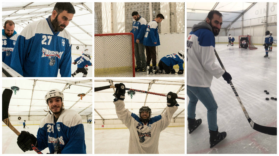 “Όταν μου δίνεται η ευκαιρία να δοκιμάσω ένα άθλημα που δεν έχω ξαναδοκιμάσει στη ζωή μου, αρπάζω την ευκαιρία από τα μαλλιά. Έτσι και με το χόκεϊ επί πάγου. Η τελευταία φορά που είχα επαφή με τον πάγο ήταν πριν από σχεδόν 15 χρόνια, στο τότε παγοδρόμιο του Αμαρουσίου, όπου πήγαινα με φίλους και προσπαθούσα να… πατινάρω. Έχοντας ξεχάσει λοιπόν, πώς να ισορροπώ στον πάγο και με πολύ περισσότερα κιλά από τότε, μπήκα λίγο φοβισμένα και “κόλλησα” πίσω από τον Ζωιτό, που θεώρησα πιο έμπειρο. Ωστόσο, ξεθάρρεψα σχετικά γρήγορα, άφησα την μπάρα από τα χέρια μου και προσπάθησα να τσουλήσω χωρίς να κρατιέμαι. Μπορώ να πω πως τα κατάφερα, αν και με ταχύτητα ενός χιλιομέτρου την ώρα, αλλά σημασία έχει πως μπόρεσα, όχι μόνο να σταθώ, αλλά και να καλύψω μερικά μέτρα.