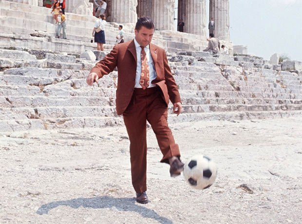 18. Ο Πούσκας παίζει με μια μπάλα με φόντο τον Παρθενώνα (1970)