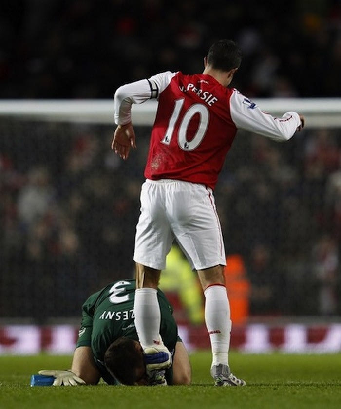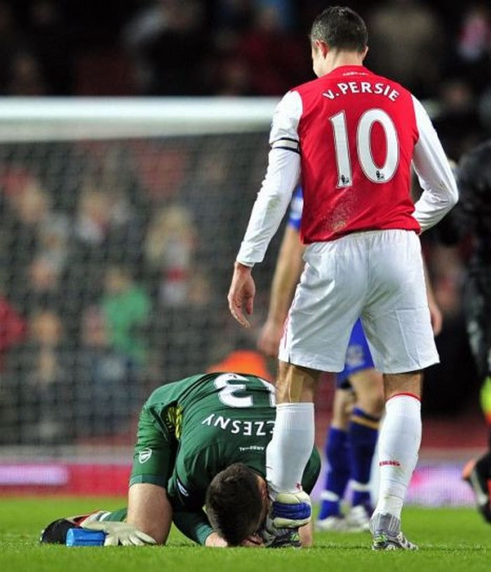 Ο λόγος για τον τερματοφύλακα Βόιτσιεχ Στσέζνι , ο οποίος έκανε το απίστευτο: έπεσε στα γόνατα και φίλησε το αριστερο πόδι του Φαν Πέρσι, με το οποίο ο 28χρονος φορ παραβίασε με ασύλληπτο σουτ την εστία της Έβερτον.