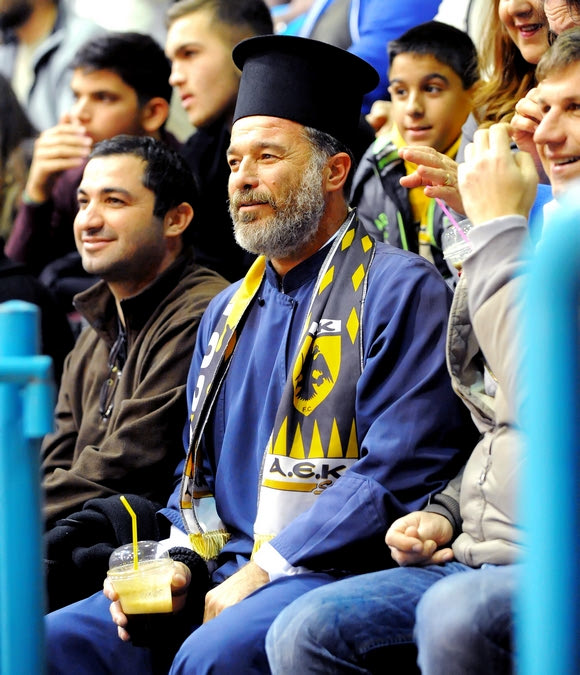 Τελικά, παρά τη… βοήθεια του Θεού, η ΑΕΚ δεν γλίτωσε την ήττα καθώς ο Κολοσσός θριάμβευσε με 86-73. Δείτε την φωτογραφία με τον Ενωσίτη παπά στις εξέδρες του γηπέδου, όπως την τράβηξε το πρακτορείο της Eurokinissi: