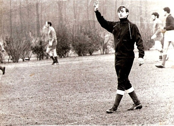 2. Ο Κρόιφ σε νεαρή ηλικία, στη διάρκεια μιας προπόνησης στις ακαδημίες του Άγιαξ (1963).